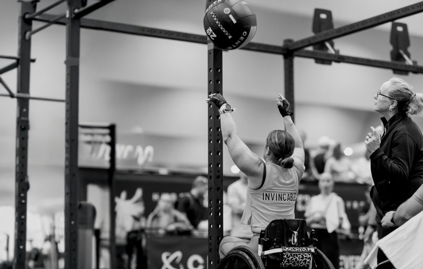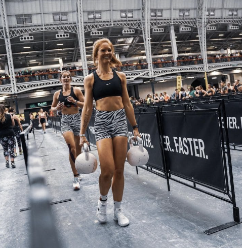 Wall Balls (월 볼): 정해진 무게의 월 볼(여성기준 4kg) 을 들고 스쿼트와 함께 벽에 던져 올리는 운동이에요. 하체, 코어, 어깨 근력을 모두 사용합니다.