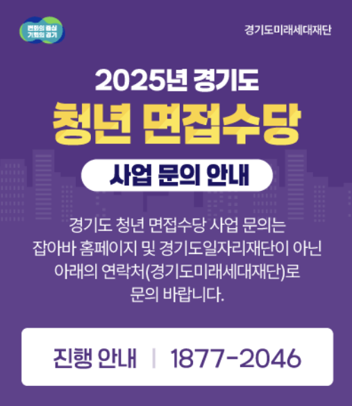 청년들의 열정과 노력에 경기도가 함께합니다. 이번 면접 수당이 여러분의 꿈을 향한 여정에 든든한 디딤돌이 되기를 바랍니다!